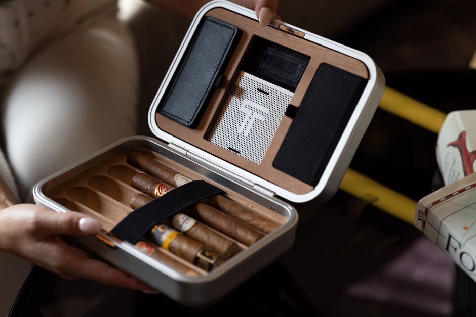 : Encase your cigars in the iconic curves of 19 Degree Aluminum. A cedarwood interior elegantly stores your cigars, making this a striking and sophisticated piece to display in the home or carry with you on the go.