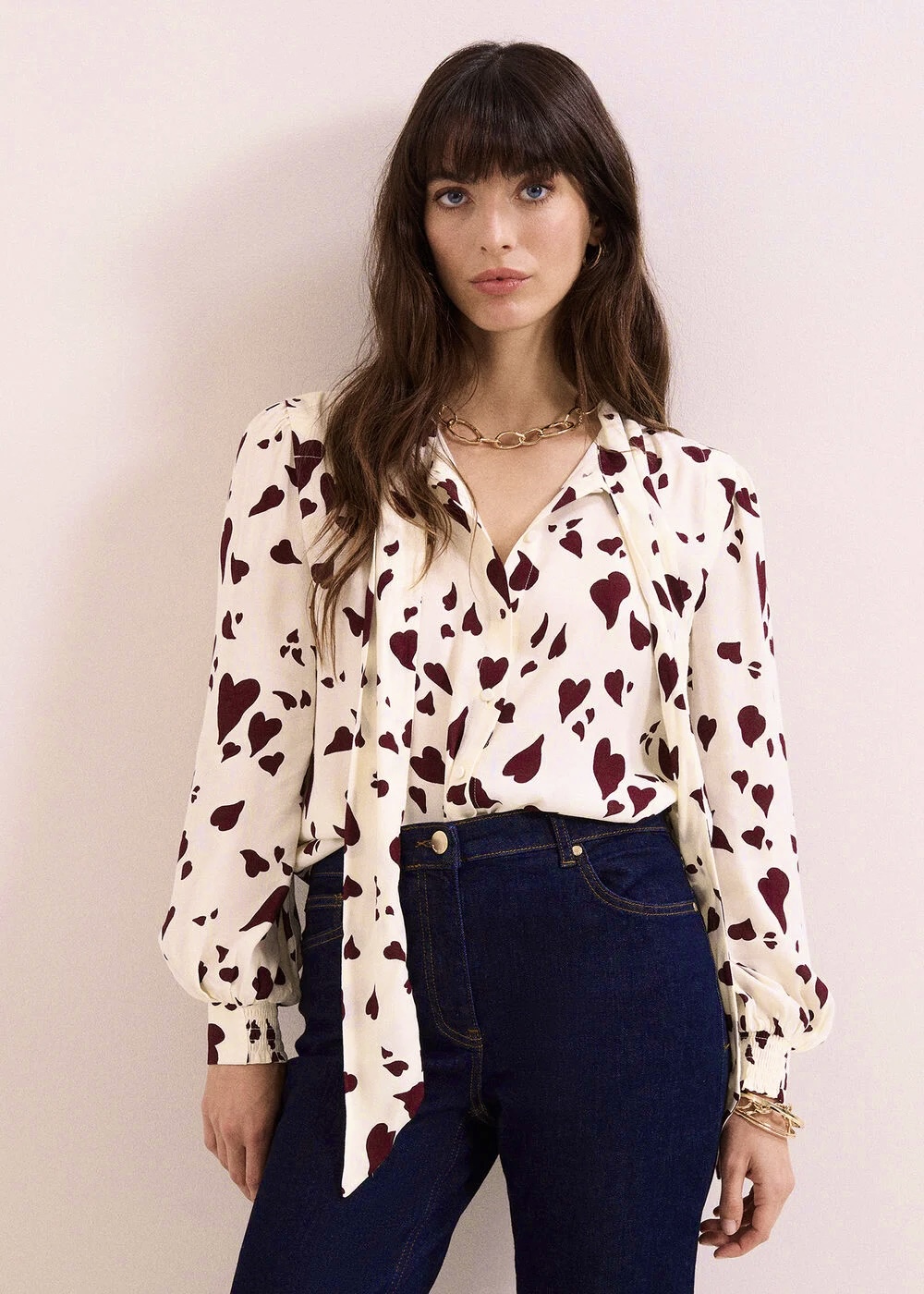 A blouse you’ll love to wear on repeat. This romantic white blouse features an abstract heart print that feels modern but playful. With timeless blouson sleeves and a feminine pussybow detail, it’s perfect for everyday but can be effortlessly dressed up for date night. For the full look, why not style with the matching Valentina skirt.